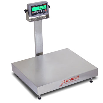 Cardinal Scale’s EB bench scales with 185 Rival weight indicators feature rechargeable battery power allowing them to be moved easily to multiple locations, bold 1-inch/25-mm high backlit LCD for high-visibility readouts, 3 platform sizes and 5 capacities available. Capacities range from 15 lb/6 kg up to 300 lb/150 kg and the EB series is NTEP, OIML, and Measurement Canada legal for trade. Cardinal Scale’s EB bench scales feature the strength and durability of a beautiful stainless steel scale base and column combined with the elegant and comfortable tactile feel of the ABS washdown 185B Rival weight indicator.