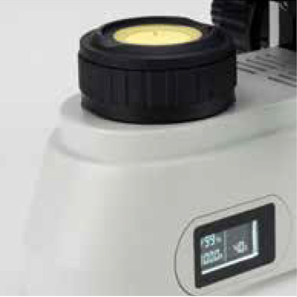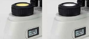Kohler 3W LED (3000K-5600K), light intensity continuously adjustable; LCD beside the frame to show the color temperature, with intensity control and field diaphragm in the lamp. |