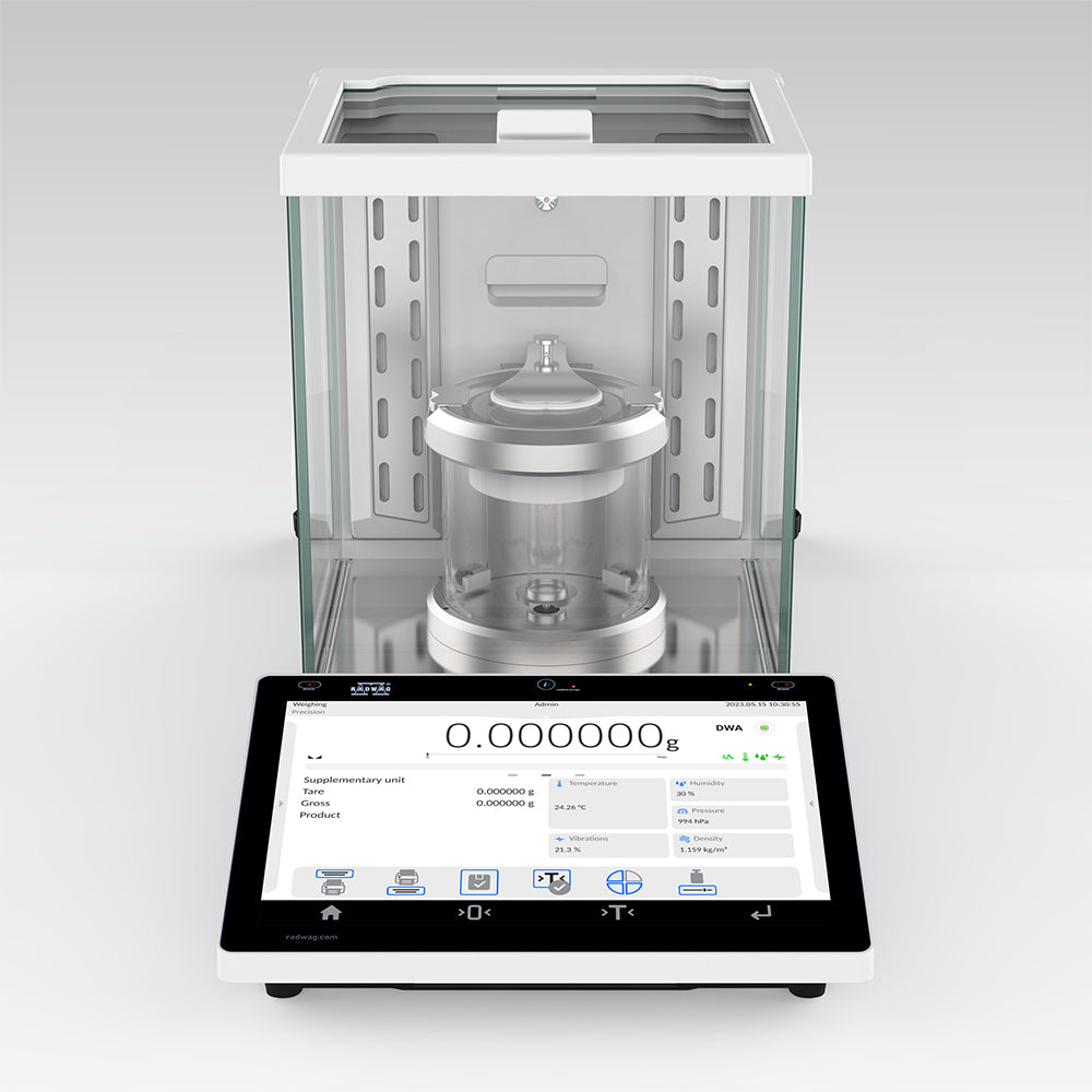 | Delivery components | Microbalance, weighing pan, weighing pan shield, power supply, automatic pipette calibration adapter: (base, bottom ring, glass vessel, pipette calibration adapter, evaporation ring, weighing pan, glass lid, mechanical closing cover, protecting screw), brush, fabric dust cover. |