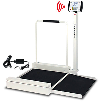 With Detecto’s 6495 heavy-duty wheelchair scale, you receive digital speed and increased accuracy that only electronic weighing can provide. The display is mounted on a ball-pivot mount swivel, so that it can be positioned wherever it’s easiest for the patient and medical professional to view. An alphanumeric keypad for entry of known weights of empty wheelchairs speeds the process, providing the weight of patients instantly on the MedVue 1LOOK indicator. Sturdy steel construction and a ramp with non-skid surface further ease wheelchair weighing operations. The scale also features RS232 serial, USB, and optional wired or Wi-Fi Ethernet for connectivity to EMR/EHR in healthcare facilities. Powered by 6 C batteries (not included) or optional AC adapter. 800 lb x 0.2 lb / 360 kg x 0.1 kg capacity.