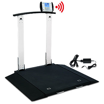 DETECTO’s 6560 is a multi-purpose clinical scale for wheelchair weighing and it also features an elegant, curved handrail that provides patient stability while weighing standing. By sliding the release levers, the columns easily fold down and lock for fast-and-easy transport and vertical storage. Enjoy the time-saving benefits of this scale by using the convenient pushbutton or keypad tare to remove the wheelchair weight. The scale features 1,000 lb / 450 kg capacity, units locking into Kilograms or Pounds, two-way built-in ramps for accessibility from both sides, large 32 in x 36 in / 81 cm x 91 cm platform, clinical-grade accuracy to 0.2 lb / 0.1 kg, battery or AC power, up to 99 tares (optional) to store wheelchair weights, and Wi-Fi/Bluetooth is available in some models for wireless EMR/EHR connectivity. The platform is only 2.2 inches/56 mm high for easy patient accessibility and comfort while weighing either standing or in a wheelchair. OIML EC class III approved model is available. The 6560 is NTEP certified for medical dosing accuracy.