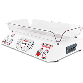DETECTO’s 6745 digital baby scale was designed for use in the NICU, nursery, delivery room and pediatric practices where high accuracy and dependability is paramount for weighing the smallest of patients. The 6745 baby scale features 1 gram divisions, 30 lb / 15 kg capacity, roomy 22 in x 9 in / 57 cm x 23 cm weighing tray (flat portion), NTEP certified for verified weighing accuracy to prevent dosing errors, full-color touchscreen 3.2 in (diagonal) LCD with 320 x 240 resolution, OneWeigh units locking into LB or KG, integral measuring tape (up to 22 inch/56 cm), lift-off clear polystyrene tray for easy cleaning, built-in carrying handles, and wide supportive base for infant safety. Colorful animal graphics across the front of the scale make weighing fun and attractive for children. The LCD’s MILK and DIAPER keys allow you to track infant fluid output for health monitoring. The memory function stores and recalls up to 5 patient weights. Metric only 6745KG model is also available.