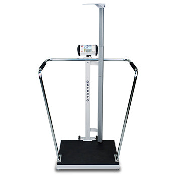 Detecto’s 6857DHR digital bariatric scale is designed for optimum weighing performance and features a versatile design that utilizes the company’s exclusive 1LOOK display showing height, weight and BMI onscreen simultaneously by raising the digital height rod while a patient is being weighed. There are no keys to push nor operational sequences to memorize; it’s fully automatic. All data may be output to a printer or PC for EMR/EHR via the scale’s serial, USB or optional wired or Wi-Fi Ethernet ports. The spacious, sturdy steel platform measures 24 inches (61 cm) square. Integral wheels and battery power allow easy transport to various locations. 1,000 lb x 0.2 lb / 450 kg x 0.1 kg capacity. OIML EC Class III model available.