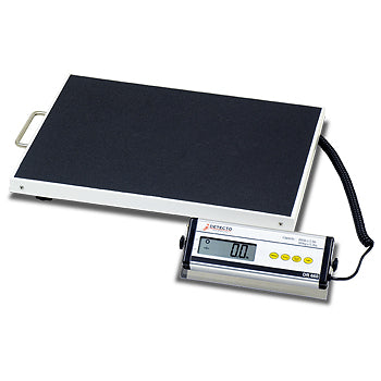 Detecto’s DR660 features a lightweight spacious 21.5 W x 17.2 D x 1.97 H inch (56 W x 44 D x 5 H cm) weighing platform, built-in rechargeable battery pack (7.2 VDC / 1200mA) which is able to provide eight hours of continuous use, or 120 VAC 60Hz powering a 15 VDC 300mA wall plug-in UL/CUL listed power supply (included). 1 inch (25 mm) high LCD digits. RS232 serial output and integral carrying handle. 660 lb x 0.5 lb / 300 kg x 0.2 kg capacity. Optional stainless steel wall-mount grab bars also available for patient stability (GBSS18-WM, 1 per).