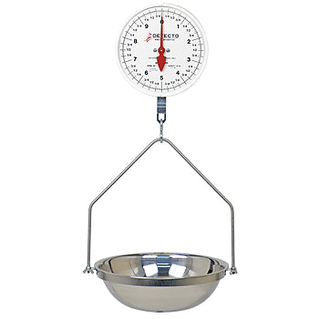 DETECTO’s MCS series hanging dial scales are built for commercial use in grocery store produce sections, farmers markets, butchers, and nut counters. DETECTO offers the MCS mechanical scale with a galvanized scoop and chains, bowl suspended by a steel bow, and also the dial by itself with two S-hooks. The large 8-inch-diameter dial is furnished with easy-to-read black graduations and numerals and a red knife pointer that indicates weight fast and accurately. The dial mechanism is protected by a clear lens while plastic housing eliminates dust and scratches. The MCS produce scale is offered in 20-lb and 40-lb capacities and includes two steel industrial-grade S-hooks (top and bottom). Double dials are available on some models, which offer viewing from either side of the dial. Designed for estimate weighing only (not legal for trade). Featured on TV’s “How It’s Made.”