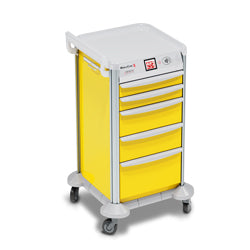 MobileCare carts offer the most robust cart customization on the market to fit your needs. The electronic carts comes with your choice of unlocking methods: one lock and individual drawer sensors, individual drawer locks and individual drawer sensors, or simply one lock. The full-color touchscreen LCD features graphical menus for intuitive prompts and easy usability. Detailed employee audit tracking mitigates narcotics theft. User setup can be done at the cart or within the included Windows software. The electronic carts feature multiple alarms, both an audible alert (with timing settings) and e-mail/text notifications (with up to 3 admins each). Up to 5,000 users are available per cart. Dual authentication is available in the electronic carts: RFID and pin code touchscreen entry. The PC software allows you to update individual users, carts, locations/buildings, and departments. You can print, download, and export detail history reports and the software holds up to 50,000 records. History tracking is available to check accountability of individual drawer inventory.