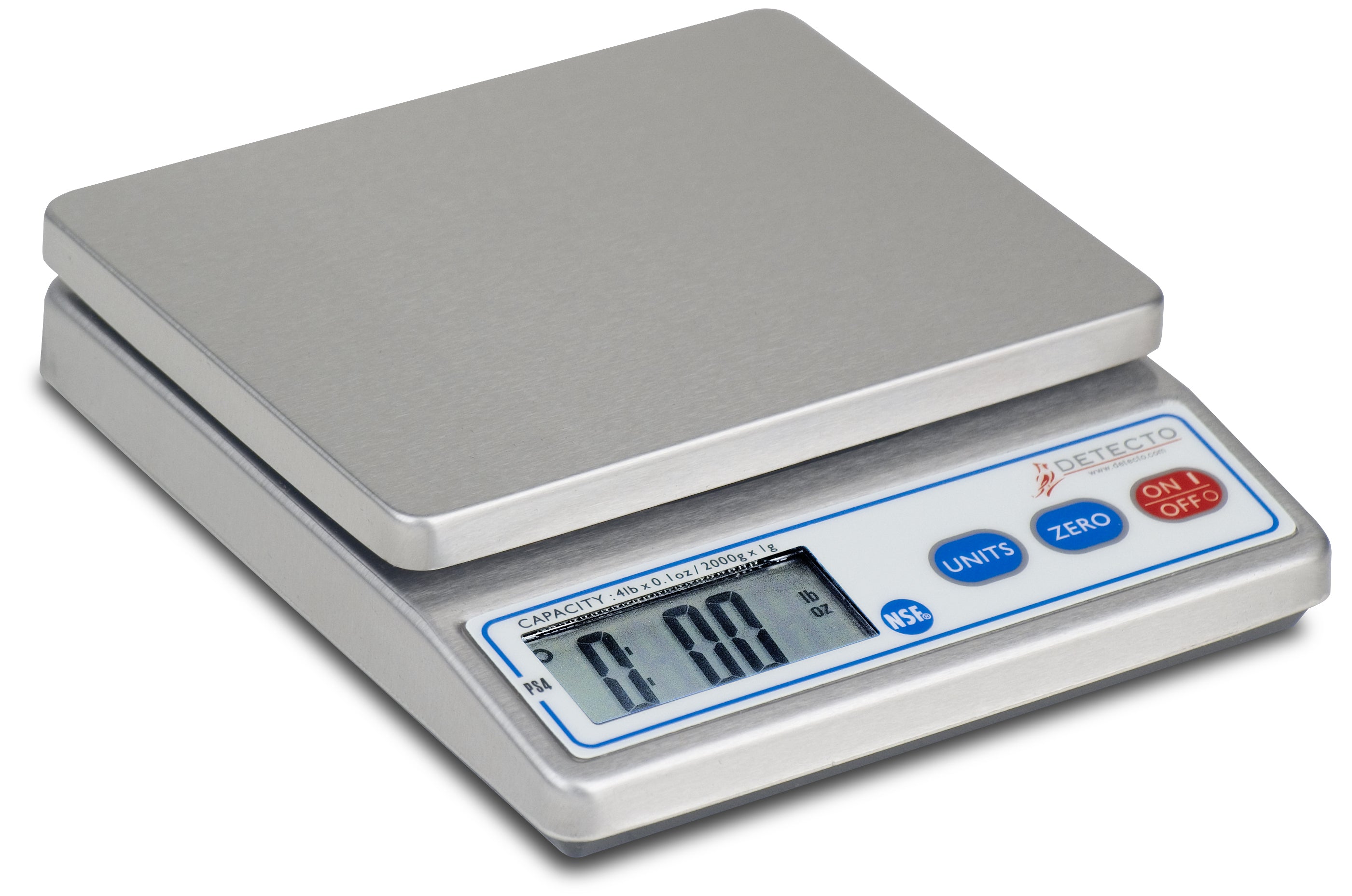 The PS4, with its smooth, molded stainless steel body, lift-off stainless steel commodity tray, and sealed membrane keypad, is incredibly easy to clean and simple to operate. Welded studs on the bottom of the tray fit tightly to the scale’s weighbridge. Featuring a 0.8-inch (20-mm) high 5-digit LCD display and a 5.9 x 4.75 inch (15 x 12 cm) platform with a capacity of 4 lb, this scale is ideal for restaurants, cafeterias, delis and pizza parlors. Accurate to 0.1 oz. NSF certified. Optional stainless steel ice cream cone holders available (single and double).
