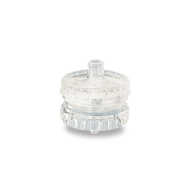 Made completely of PTFE, this holder is unaffected by chemicals and contains no trace elements which could be released into the liquid being filtered. It is, therefore, extremely well suited for particle removal from samples and reagents for analytical methods, such as NMR samples. Another inexpensive filter holder is made of clear, autoclavable polycarbonate. The silicone gasket enables a leak-free filtration at pressures of up to 7 bar by simply screwing it together manually. Filter supports in the top and bottom parts allow filtration in either direction.